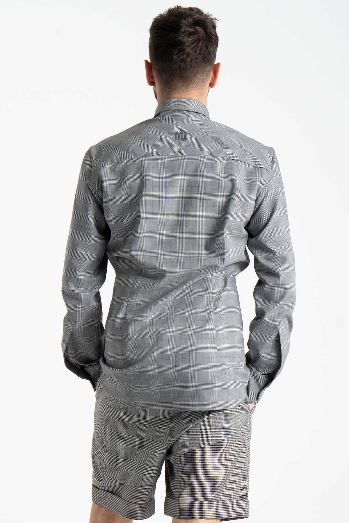 This garment is more than just a basic long sleeve. It features a pop collar and a button tab at the center front, creating an elegant look.