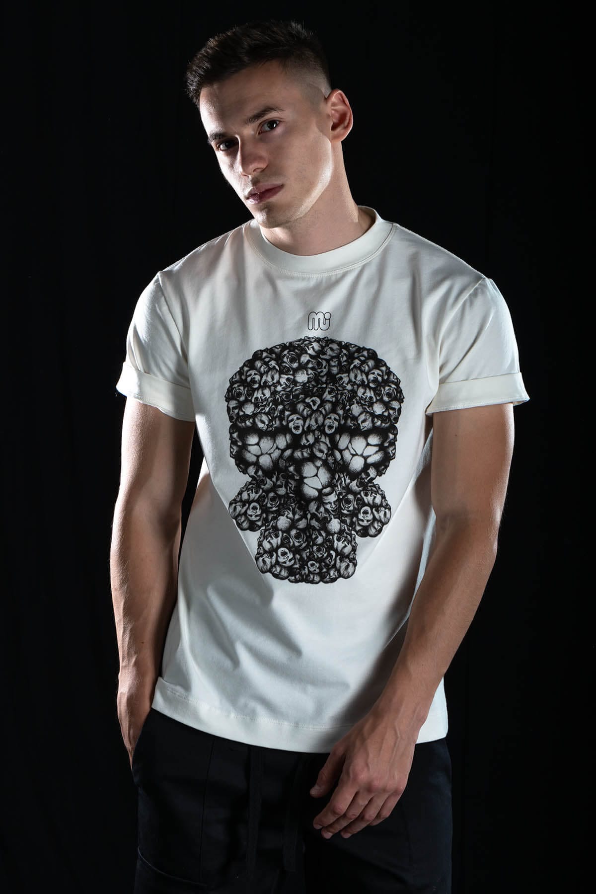 Straight-fit T-shirt with a round neckline, short sleeves, and a printed hand-drawn image on the front. Made from high-quality cotton fabric, it ensures comfort in any season.