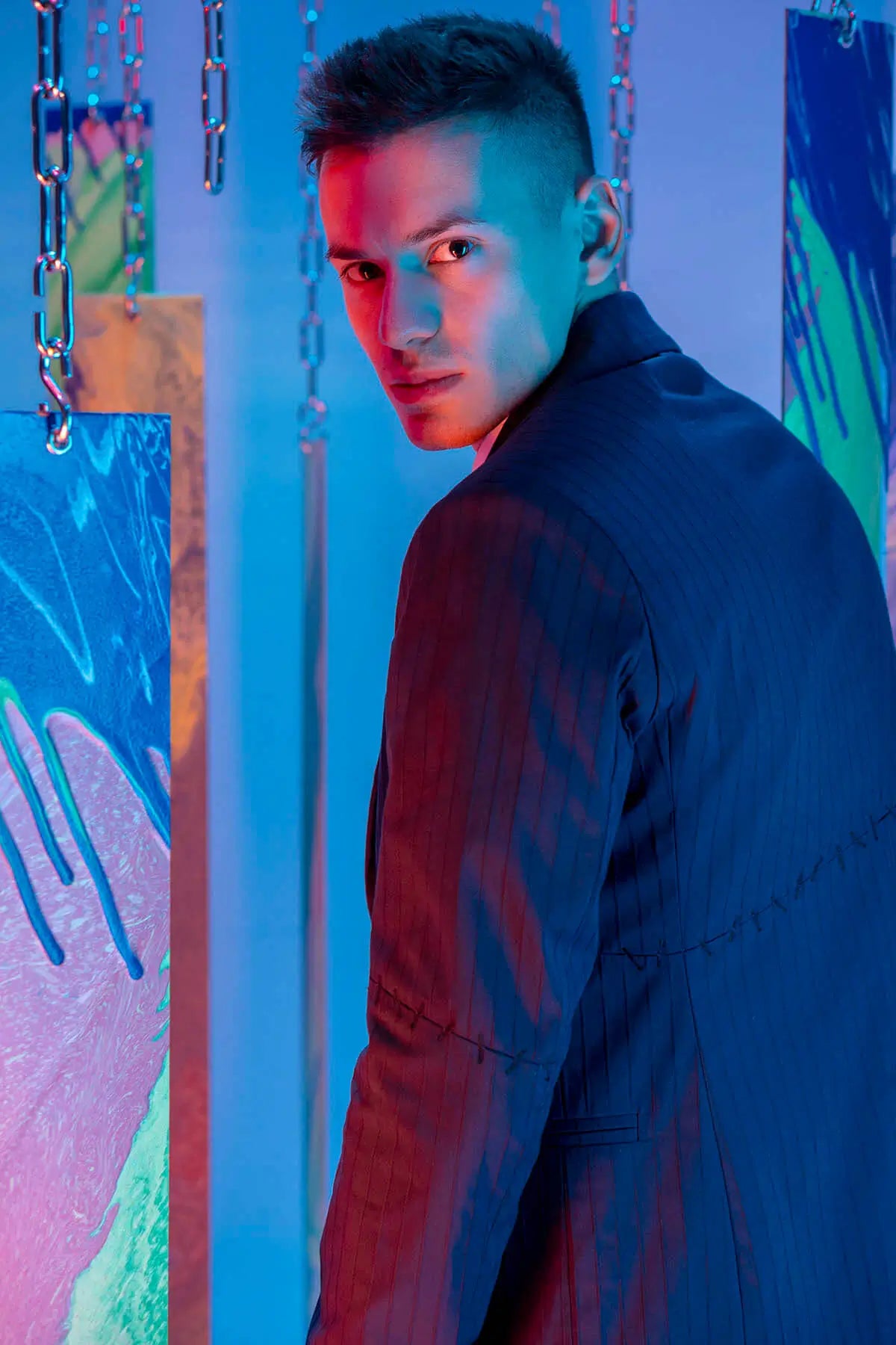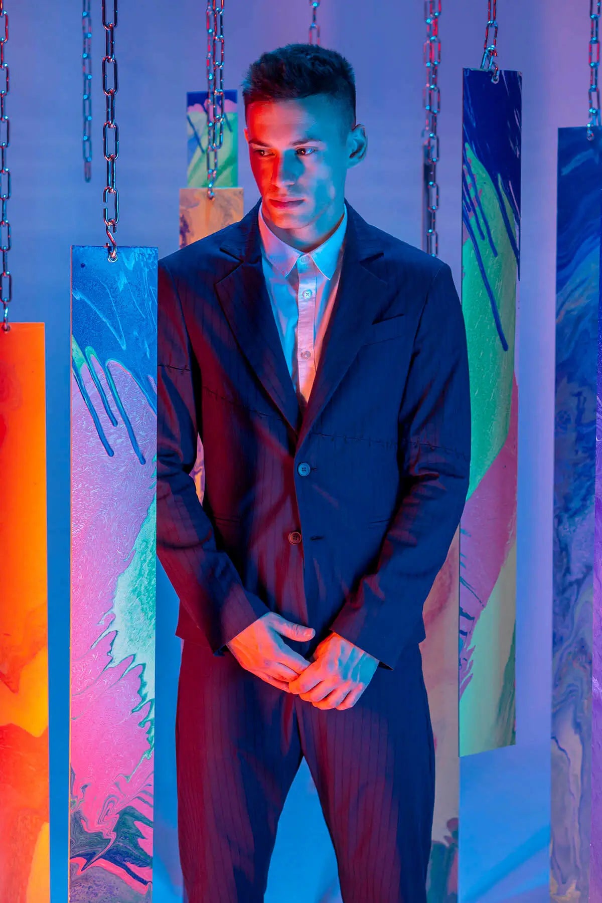 Striped 7/8 Length Trousers With Stiches in Dark Blue
