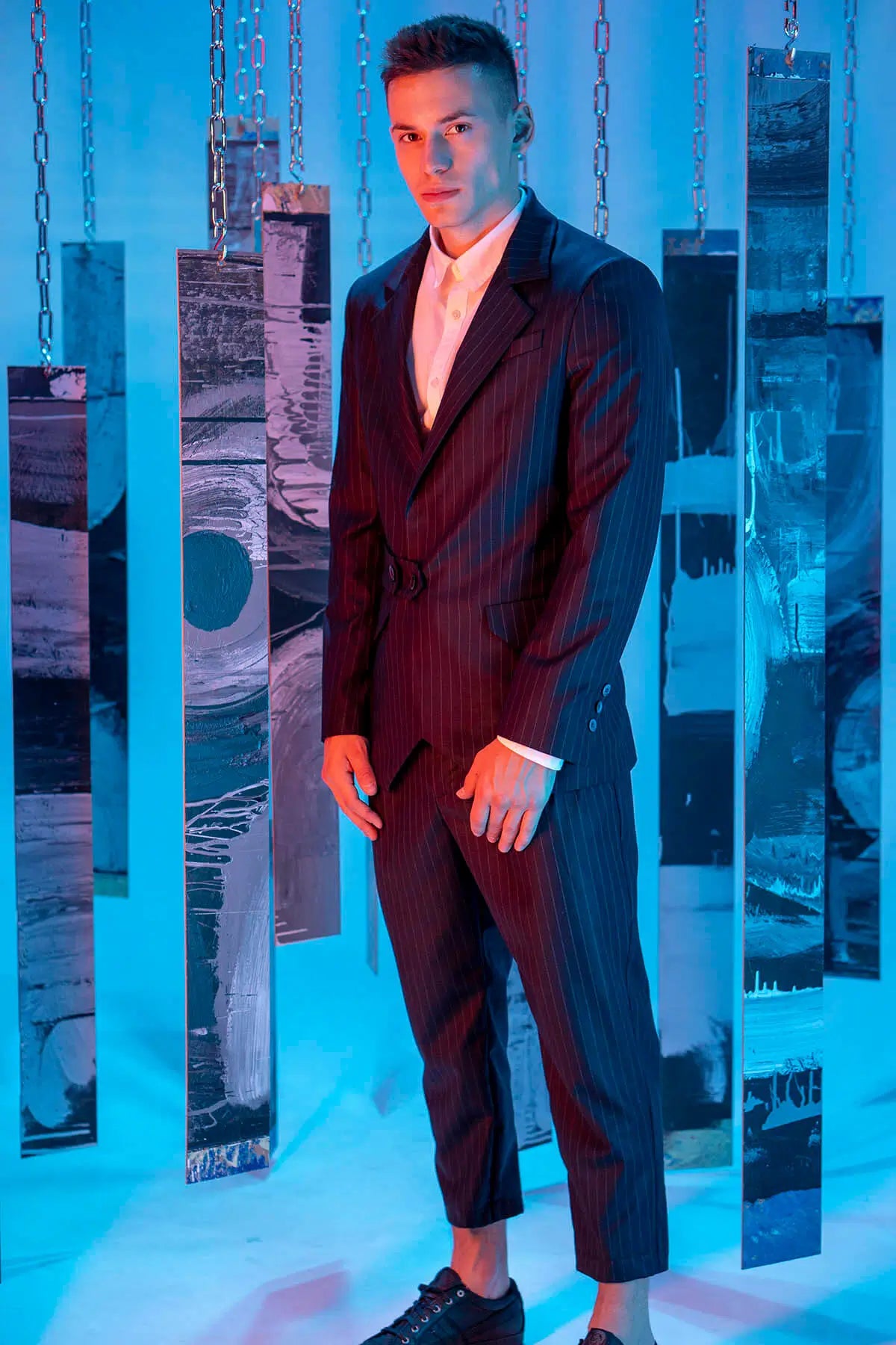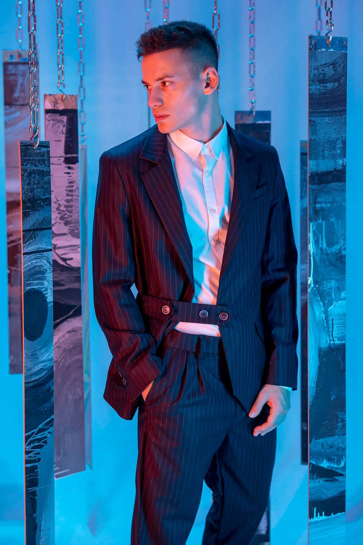 Striped Blazer with a Belt