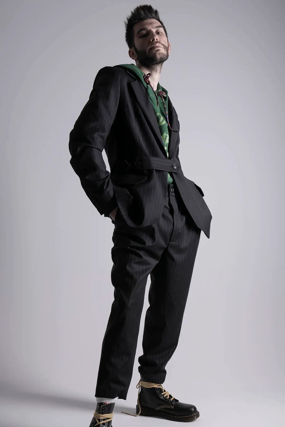 Striped Blazer with a Belt