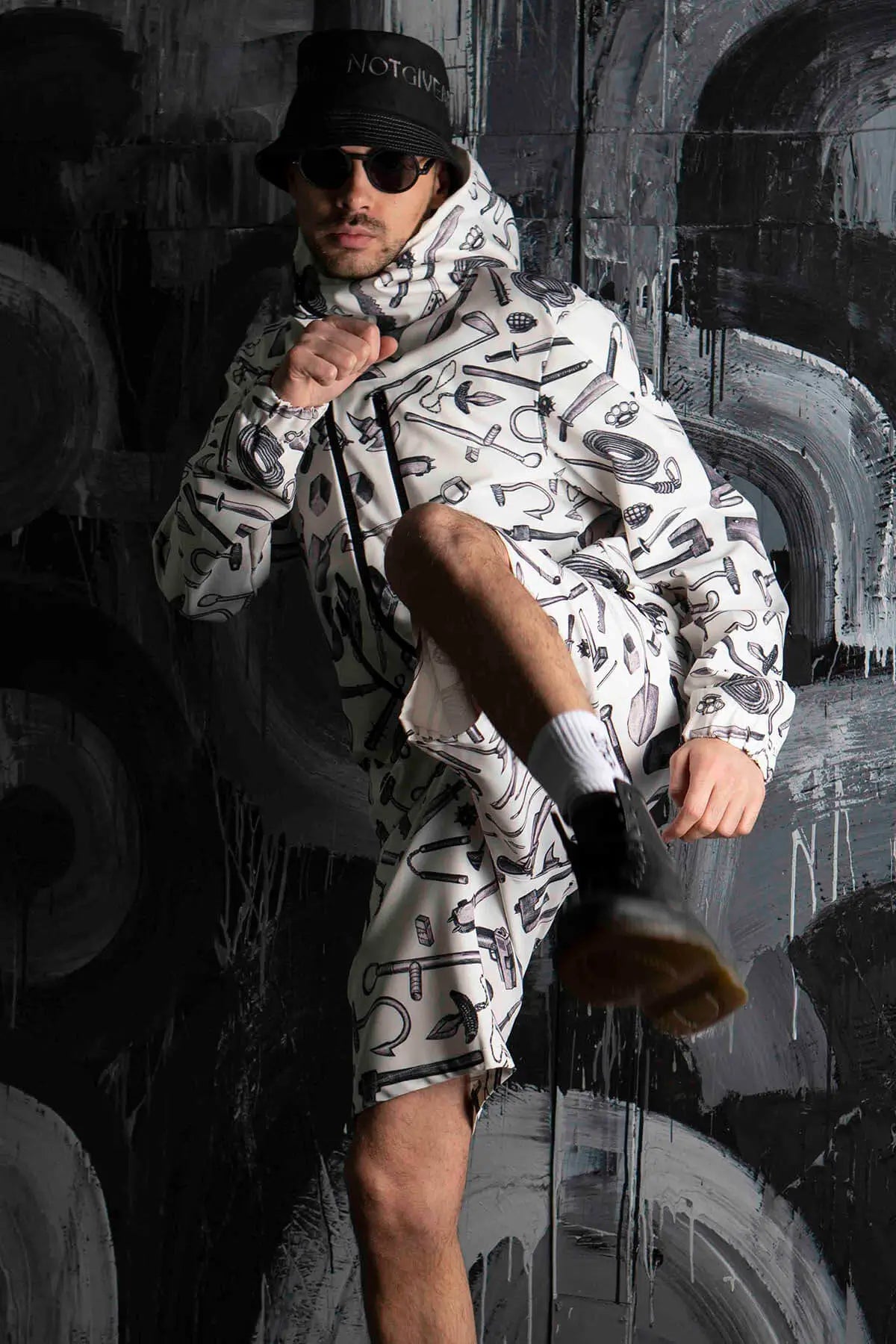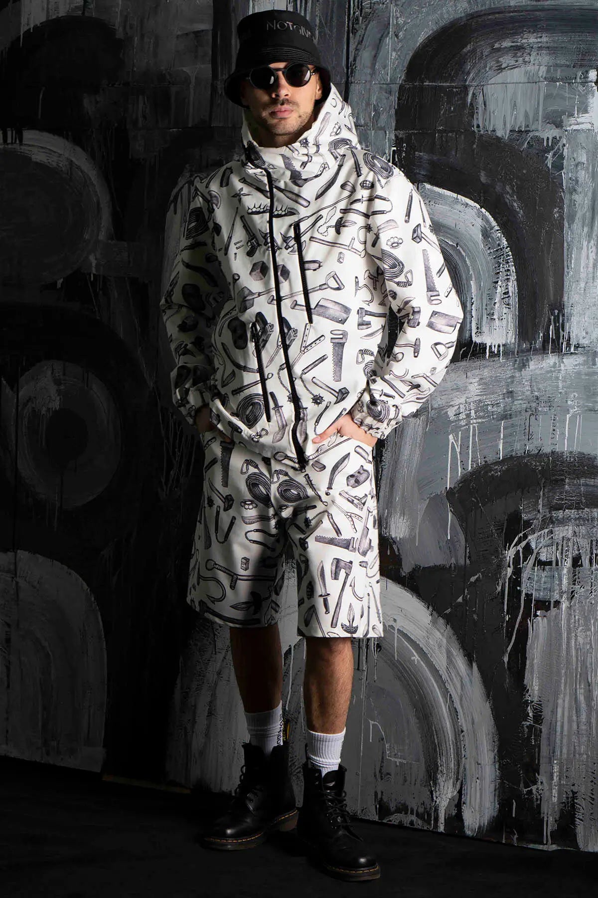 All Over Printed Asymmetric Sweatshirt in Black and White