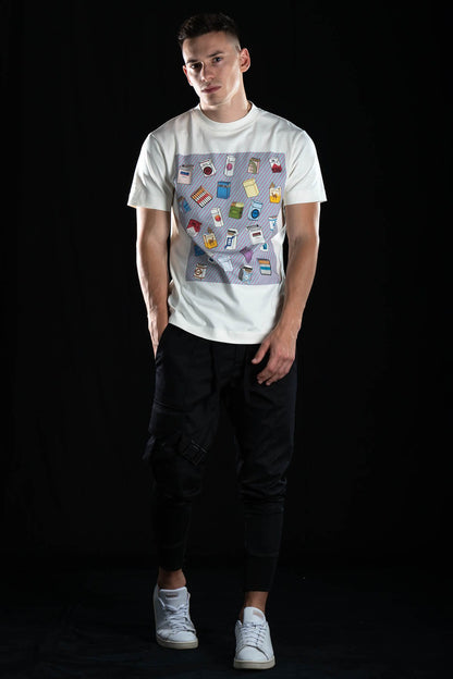 Straight-fit T-shirt with a round neckline, short sleeves, and a printed hand-drawn image on the front. Made from high-quality cotton fabric, it ensures comfort in any season